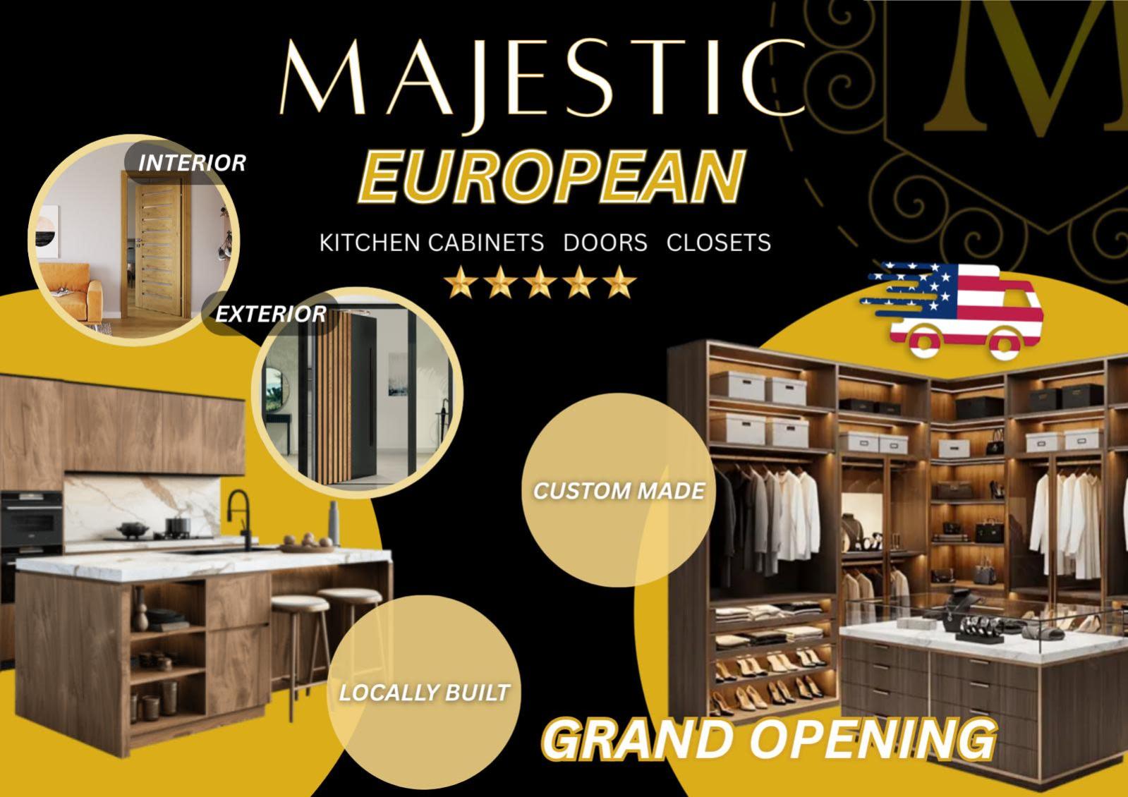 Majestic produces custom pieces tailored to each client, from luxury kitchen cabinetry and statement doors to bespoke wall panels and custom closets. Every project is made to order, with no limits on size, colour, or design.