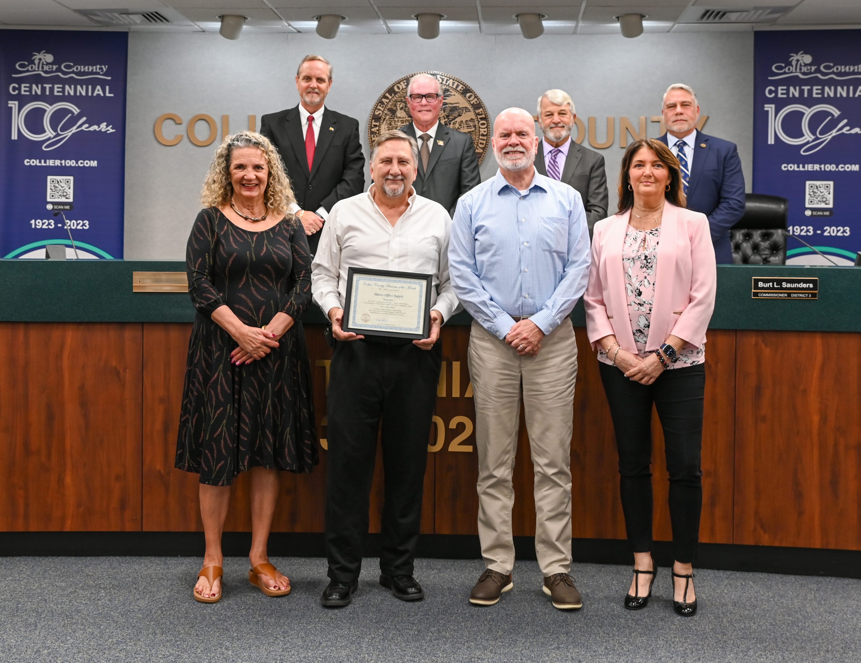 Collier County Government and Greater Naples Chamber partnered together and chose Marco Office Supply as the February 2024 Business of the Month. An award was presented to Marco Office Supply at the Collier County Board of County Commissioners meeting on February 13, 2024.
