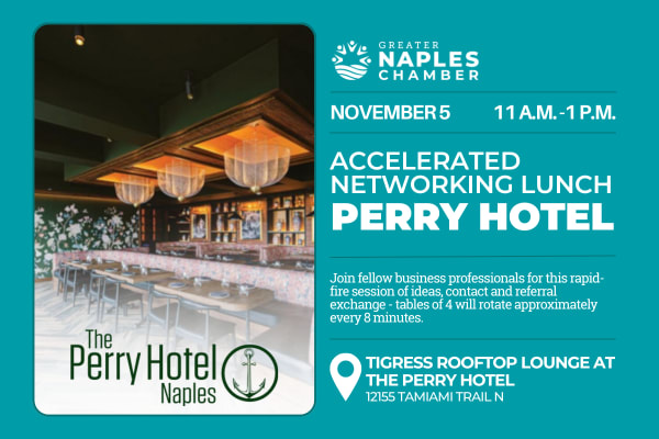 Please be advised that photographs and video may be taken at the event for use by The Greater Naples Chamber of Commerce and the "host site" website, marketing materials, social media, press releases and other publications. By registering for this event, you consent to The Greater Naples Chamber of Commerce and the "host site" using your image and likeness without compensation.
